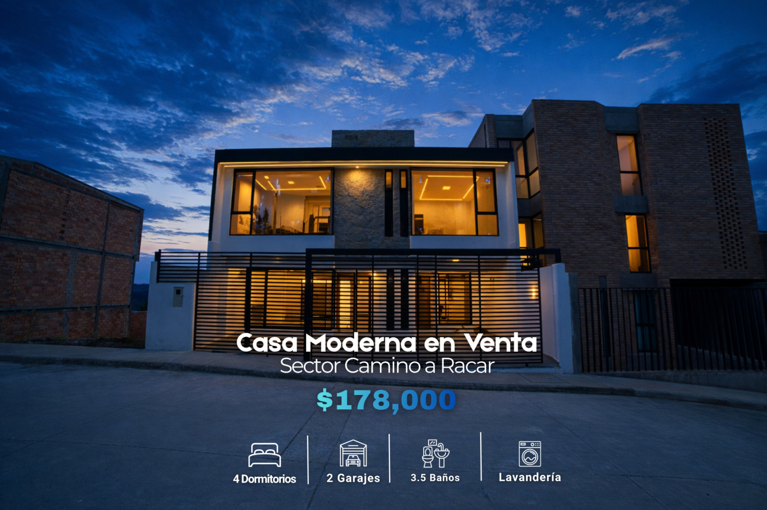 CASA MODERNA EN VENTA - Sector Camino a Racar