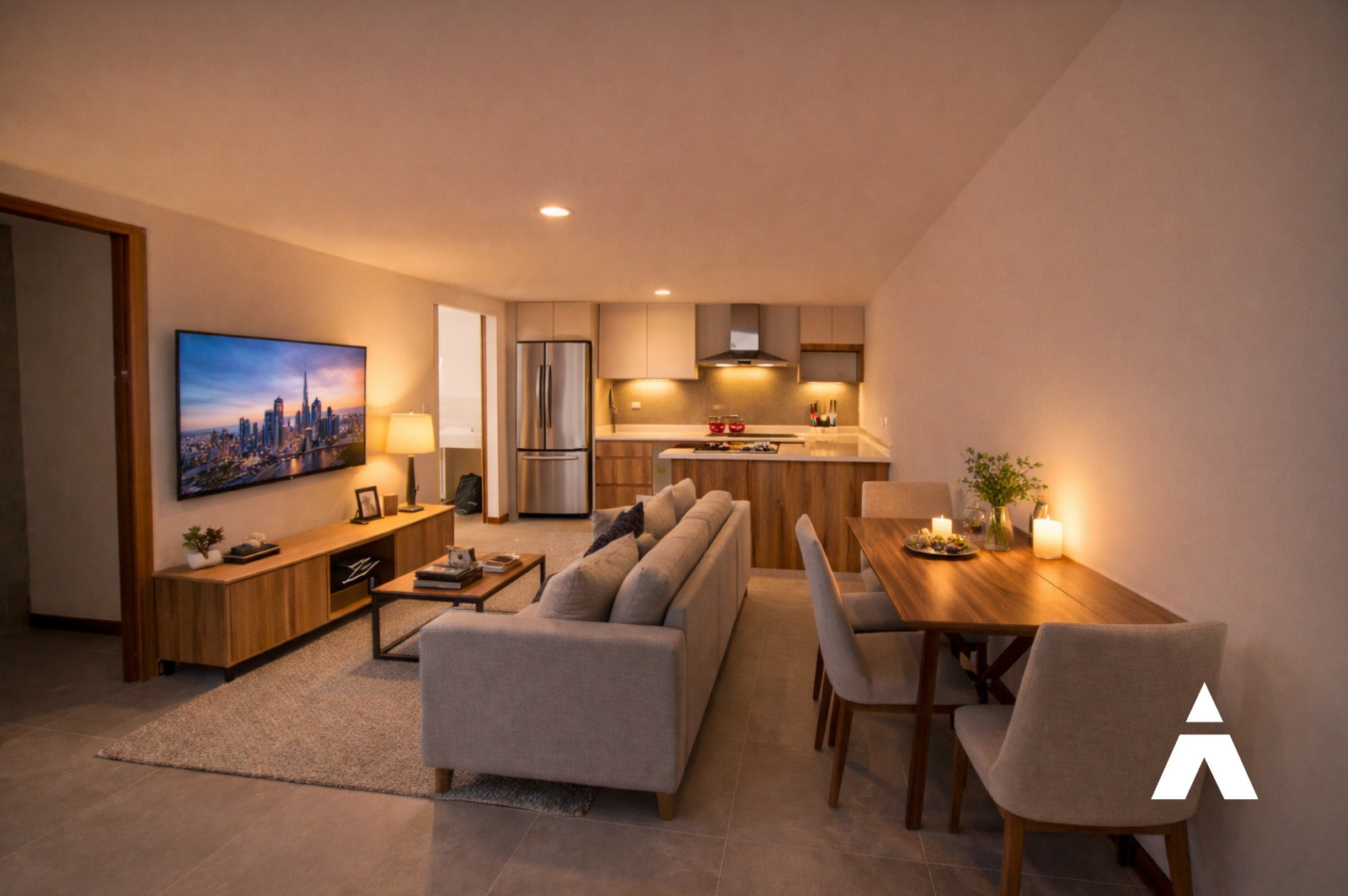 🛋 Sala, comedor y cocina con diseño moderno